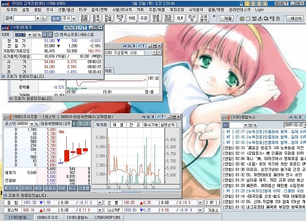 중학교때 반 장난식으로 설날때 받은 새뱃돈 20만원으로 주식한적이 있었죠.. 어쩌다 보니 중학교 졸업할 당시에는 50만까지 불어서 상당히 좋아했었습니다만.. 고등학교 입학 얼마후 처음 돈인 20만원의 절반수준인 10만원까지 떨어져 버려서 GG치고 그만둔적이 있었지요 'ㅅ';